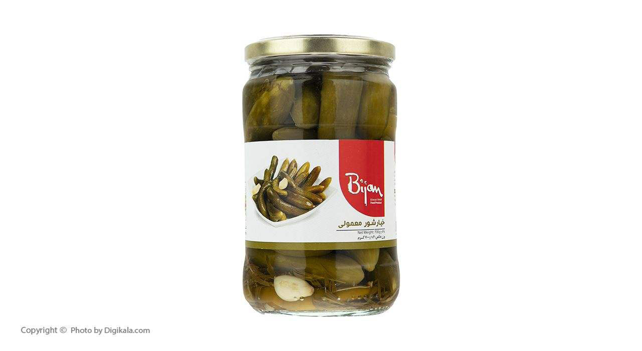 استفاده از ترشیجات و چاشنی در کنار غذا باعث افزایش اشتها میشود. چاشنیهای زیادی در سفره ایرانیان قرار میگیرد که خیار شور یکی از پر طرفدارترین آن هاست. خیار شور کاربردهای زیادی دارد یکی از مهم ترین آن استفاده این ماده خوراکی خوشمزه در ساندویچ است. ساندویچهای کمی را میتوان یافت تا از خیار شور برای مزه دار کردن آن استفاده نشود. از خیار شور برای تزئین و دورچین غذا هم استفاده میشود. طعم خاص و دلچسب خیار شور باعث میشود تا از قرار گرفتن آن در کنار هر غذایی لذت خوردن آن غذا چند برابر شود. محصولی که مشاهده میکنید خیار شور معمولی بیژن با مقدار ۶۸۰ گرم است که عطر و طعم خوب باعث شده تا آن را به یک چاشنی پرطرفدار تبدیل کند.